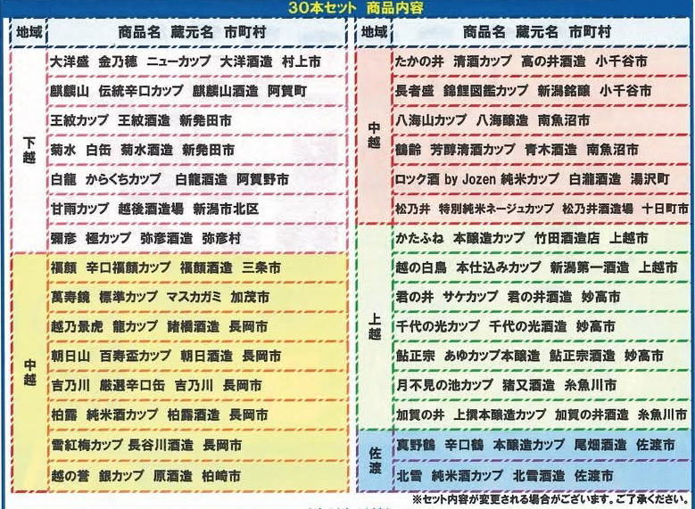 | ■新潟地酒カップ30本セット:10,000円(税込・送料別) |